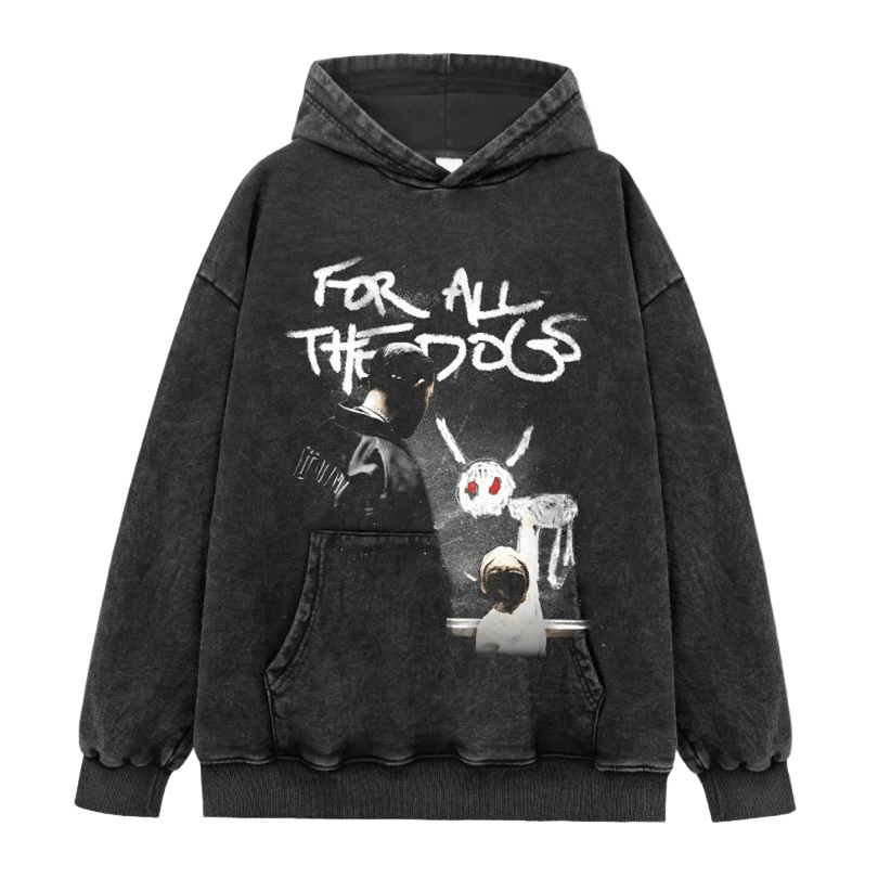 "FOR ALL THE DOGS" Hoodie Washed Black Cotton Unisex Streetwear